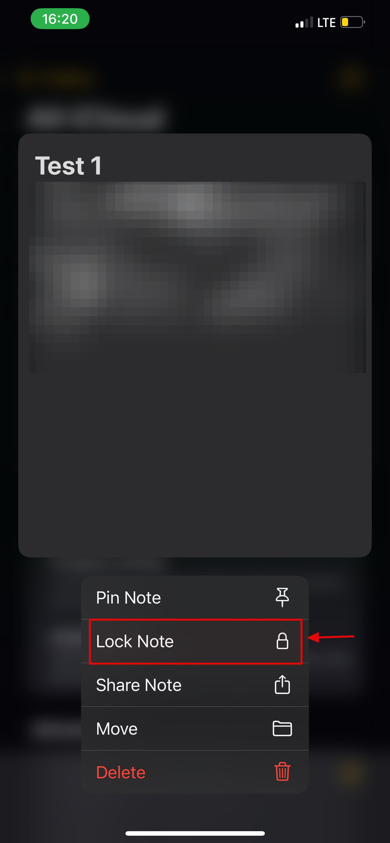Step 2: Long-press the note you want to lock and select Lock Note