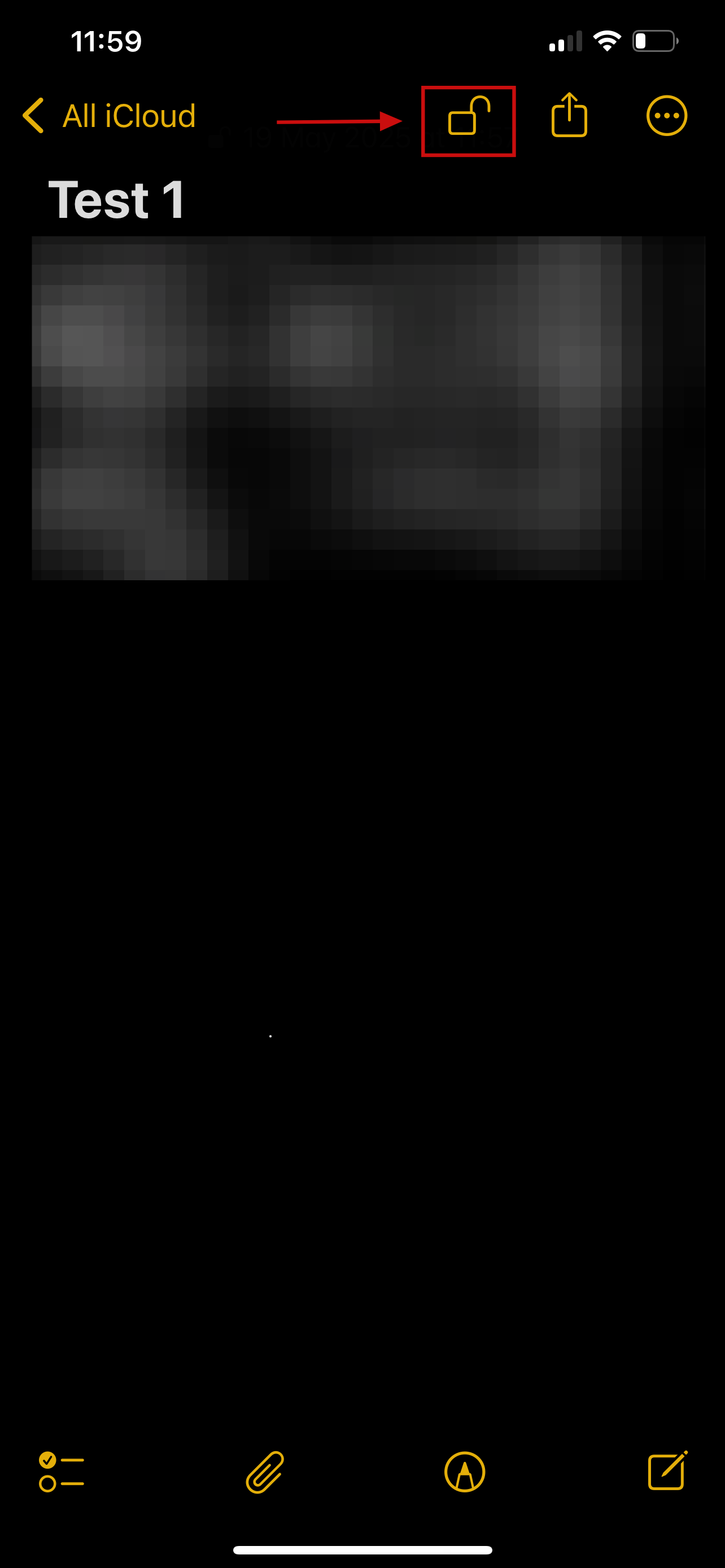 Step 5: Once the note is set up to be locked, you’ll see a lock icon at the top of your screen. Tap the lock icon to lock or unlock the note