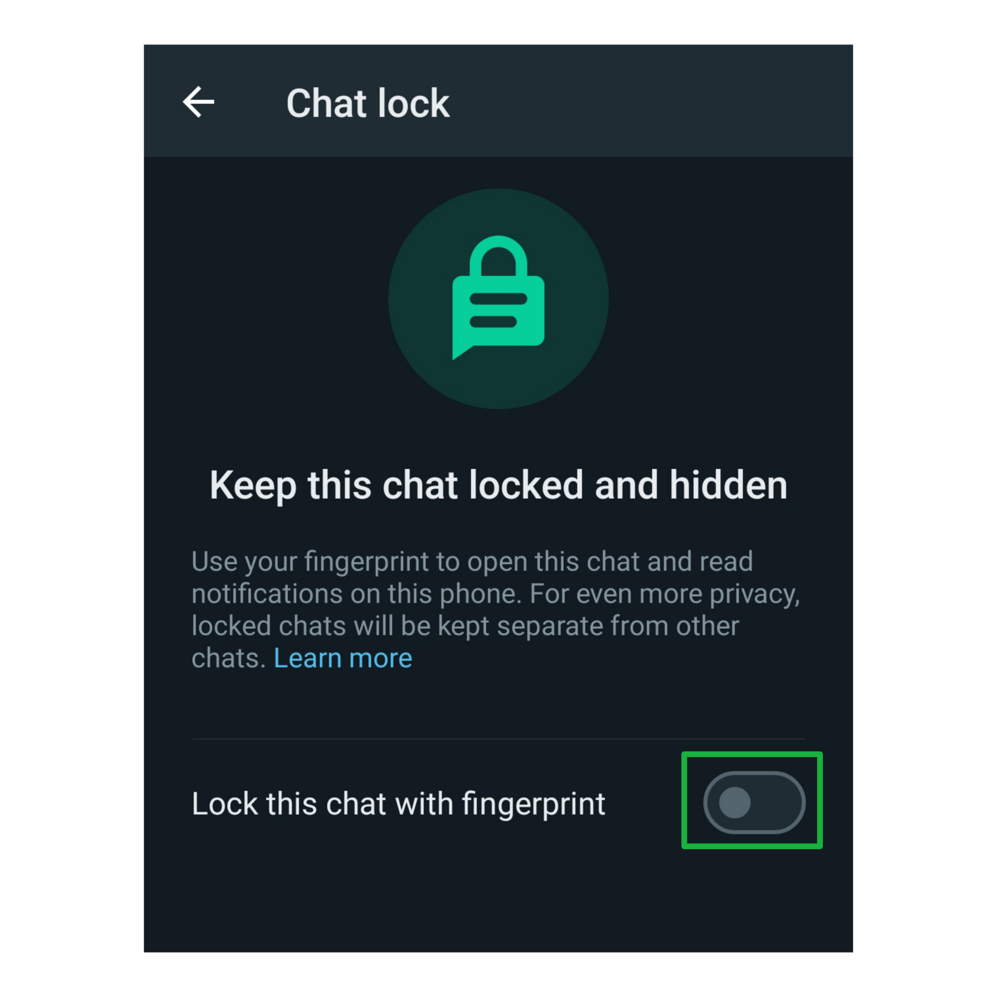 - Toggle on the Lock this chat with fingerprint.