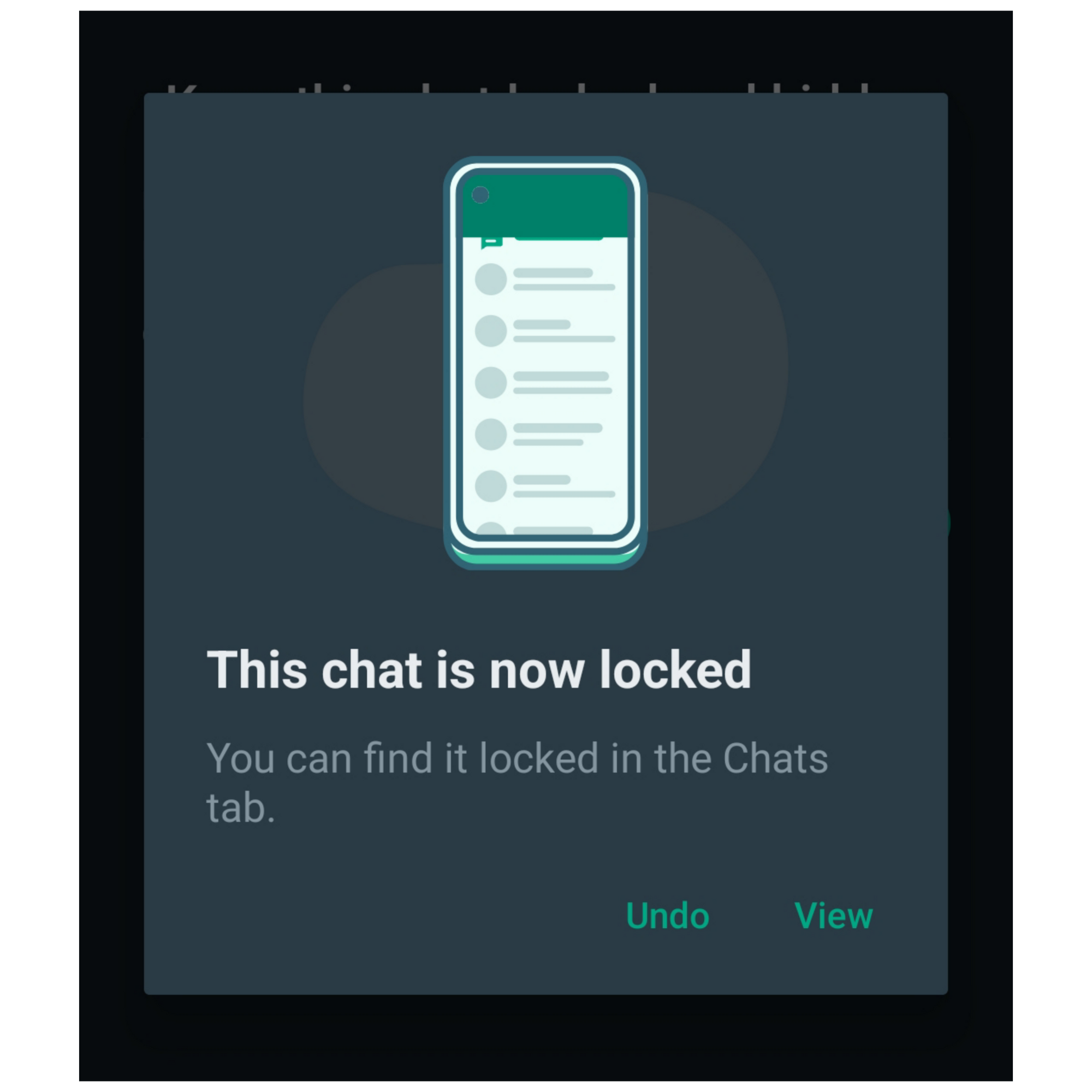 - Once done, the lock chat feature will be activated on that chat or group you chose. You can then click on View to see your lock chats.