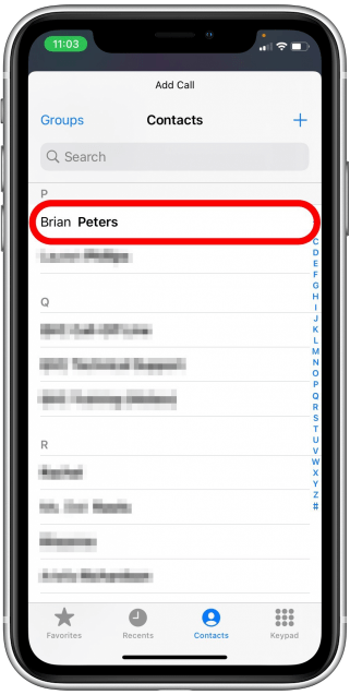 3. Once the person has picked up the call, Click on Add Call and you would be taken to Contacts.
