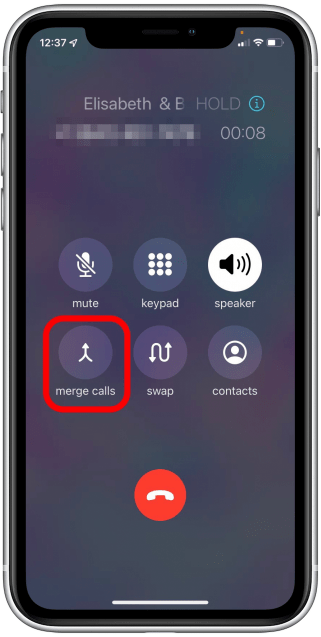 2. After picking up the call, Tap Merge Calls.