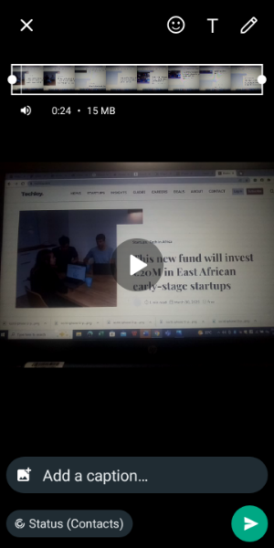 Now you have a GIF as a status but note that the Gif won't automatically save into your phone. If you want it saved, then you can share the status which contains the GIF to a friend and ask them to send it back to you or you could share the Status using Bluetooth to send it to your PC or a spare phone that you own.