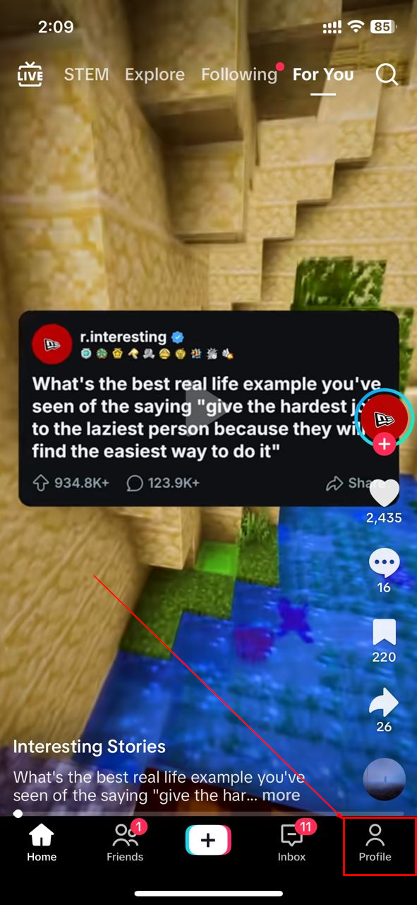 Step 1: Open the TikTok app and select the Profile icon in the bottom right corner
