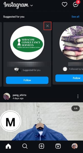 - Open your Instagram and scroll down till you see Suggestions for you.
