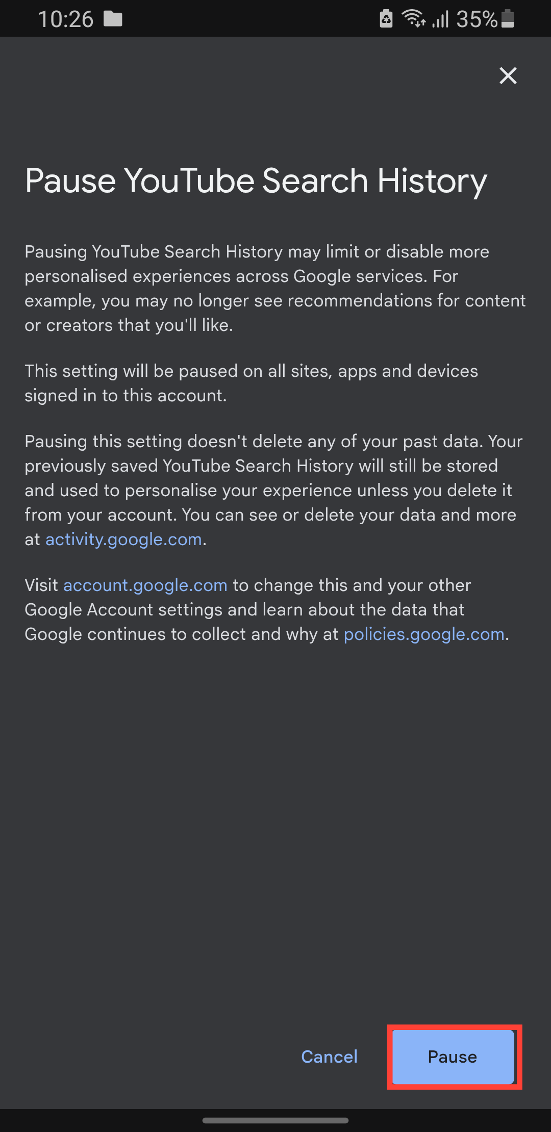 But clearing your search history isn't the only option. Maybe you don't want to delete your entire history and would rather pause it for a while.