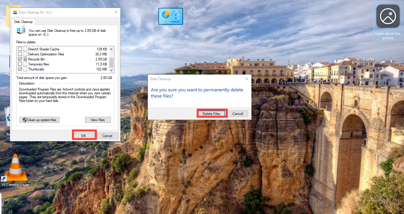 Step 4. Click "OK", then select "Delete Files" to confirm. Immediately, your PC will clean up the disk based on the checked parameters.