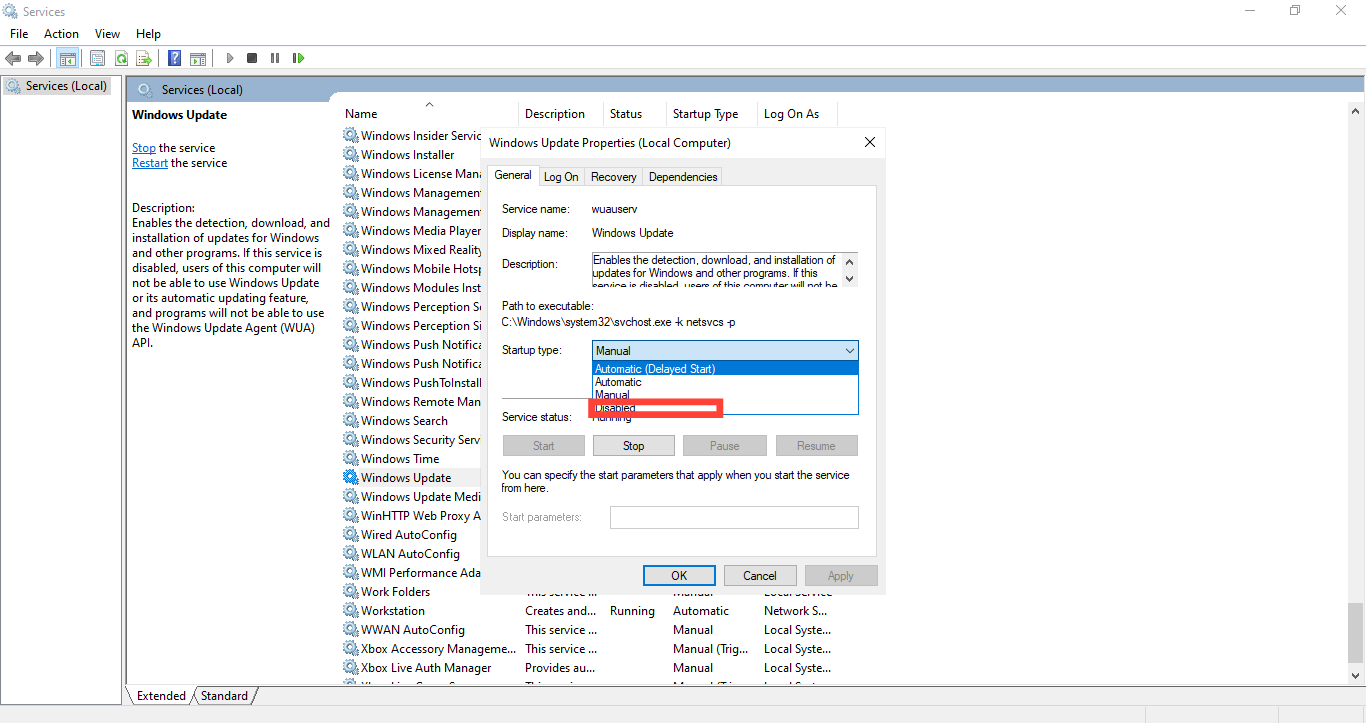However, keep in mind that disabling updates means you won’t automatically receive new security patches—so make sure to check for updates manually every once in a while to keep your system protected. If you ever want to turn updates back on, follow the same steps and select Manual or Automatic under the Startup type.