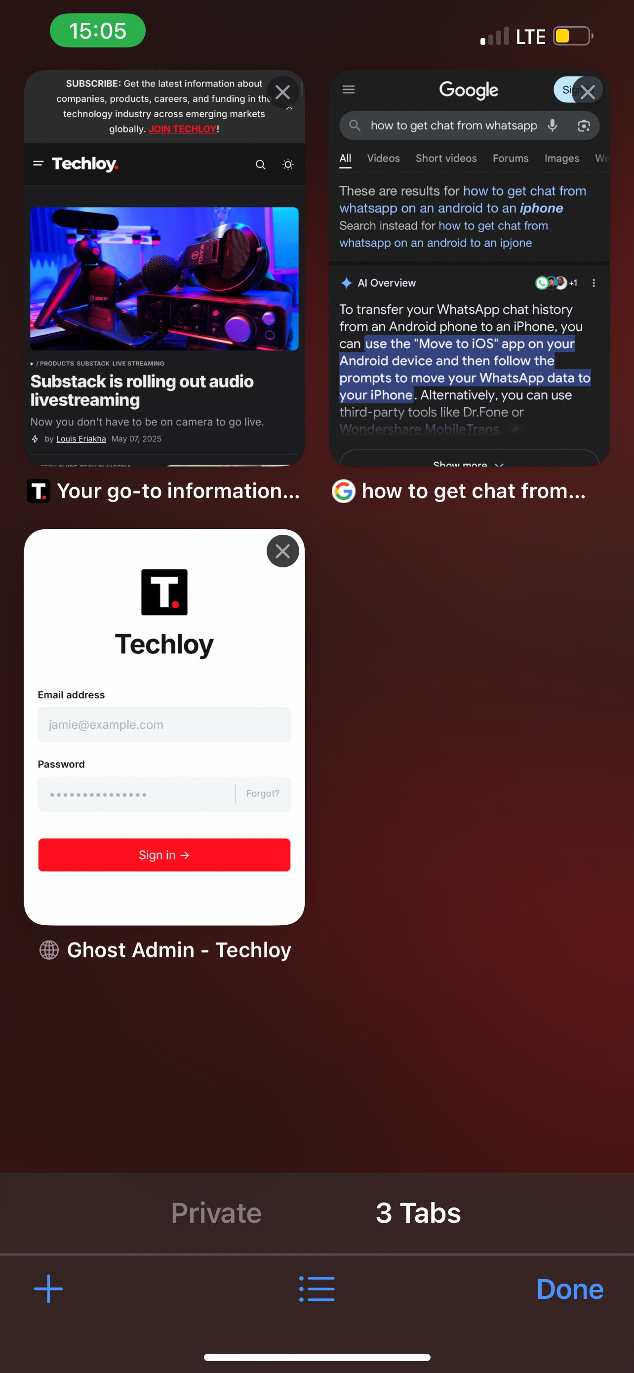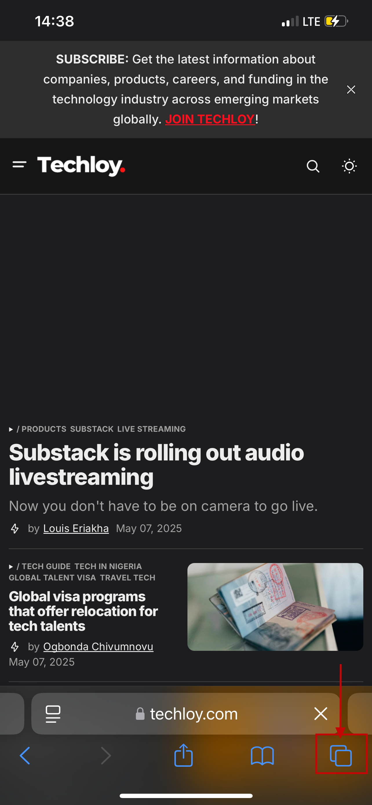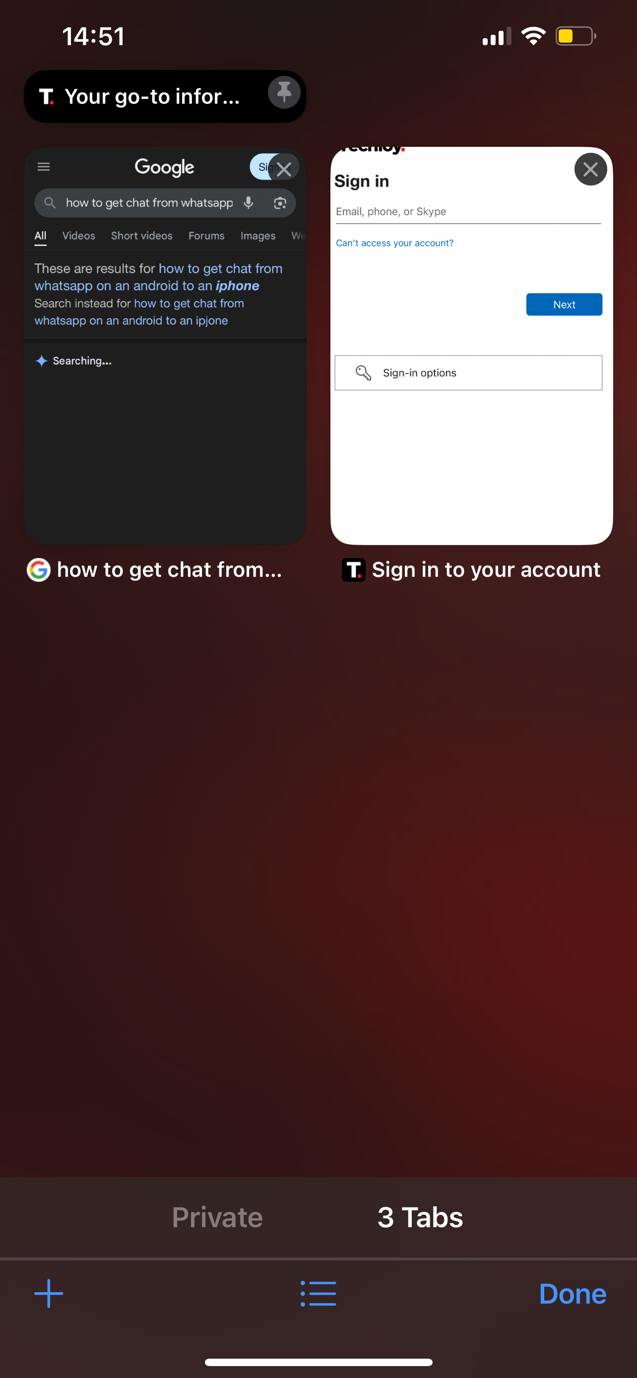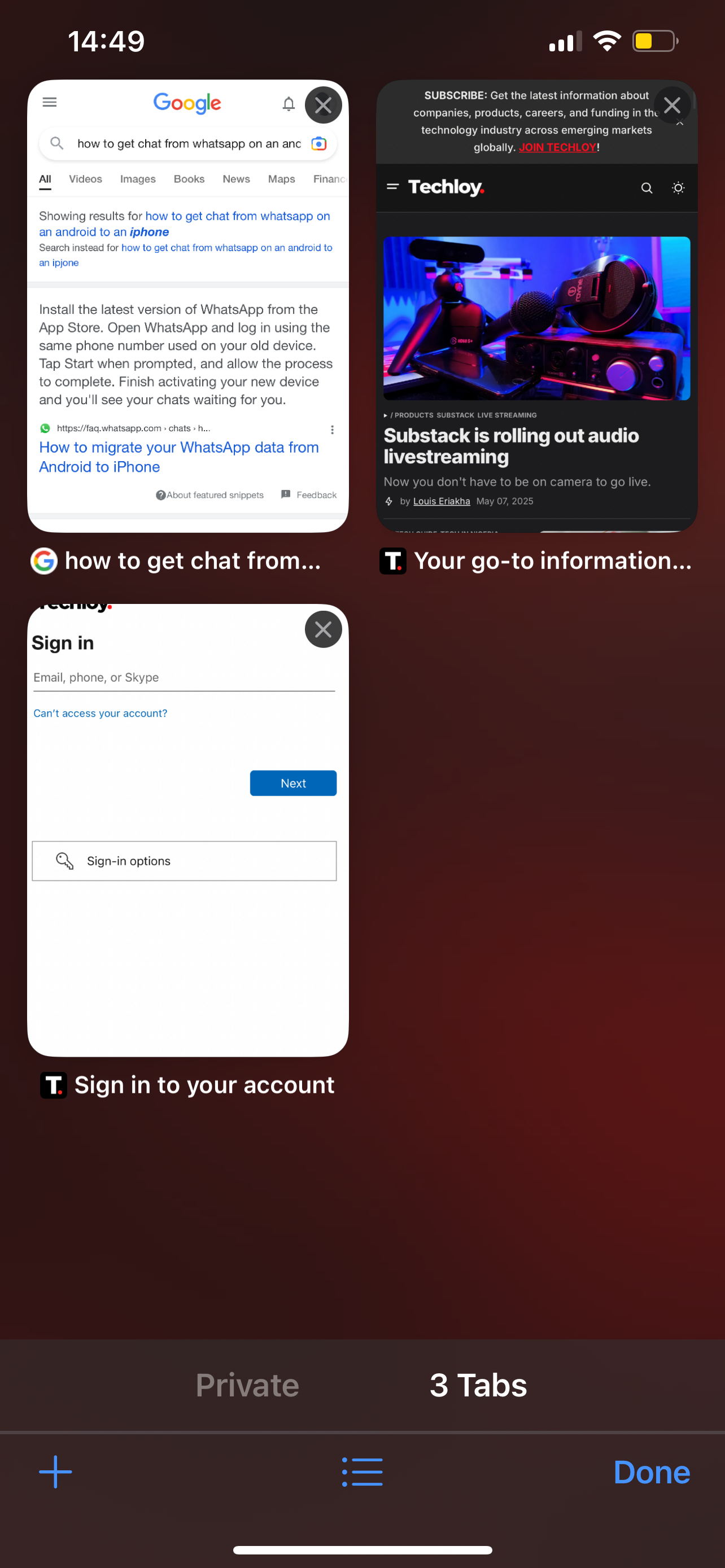 Step 2: Select the Tabs icon at the bottom-right corner to see all your tabs