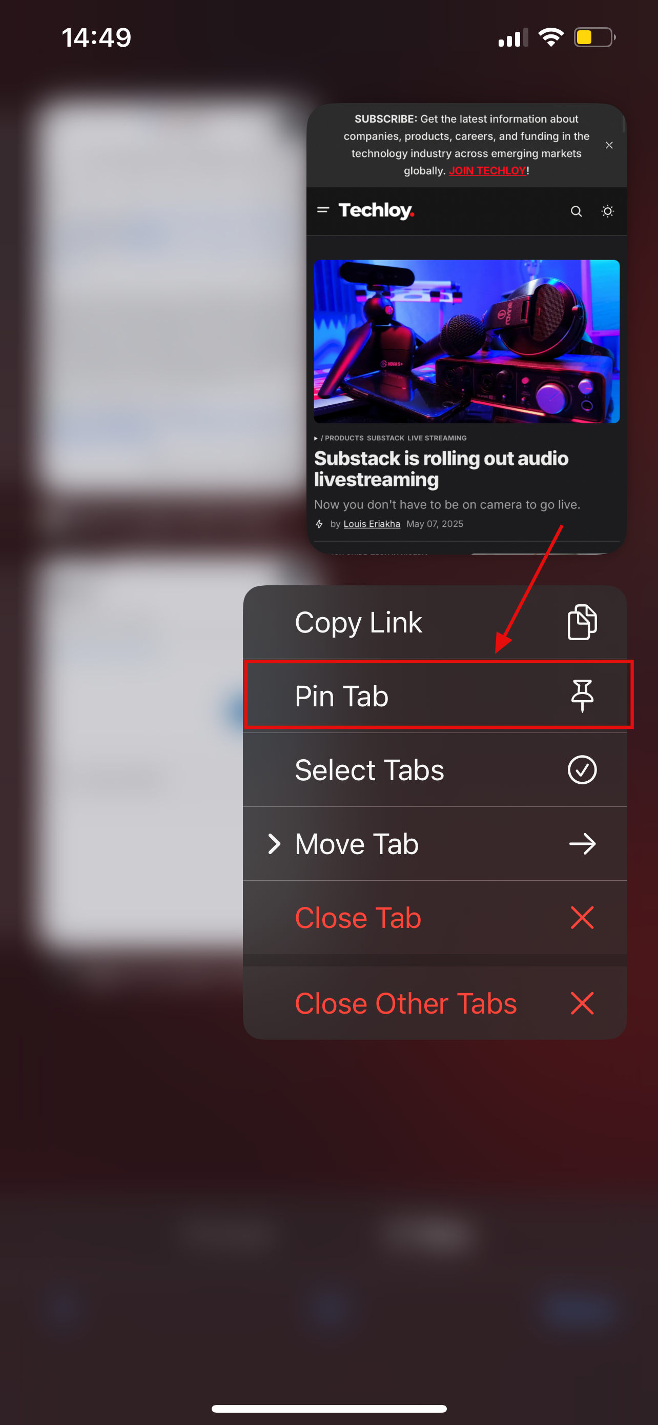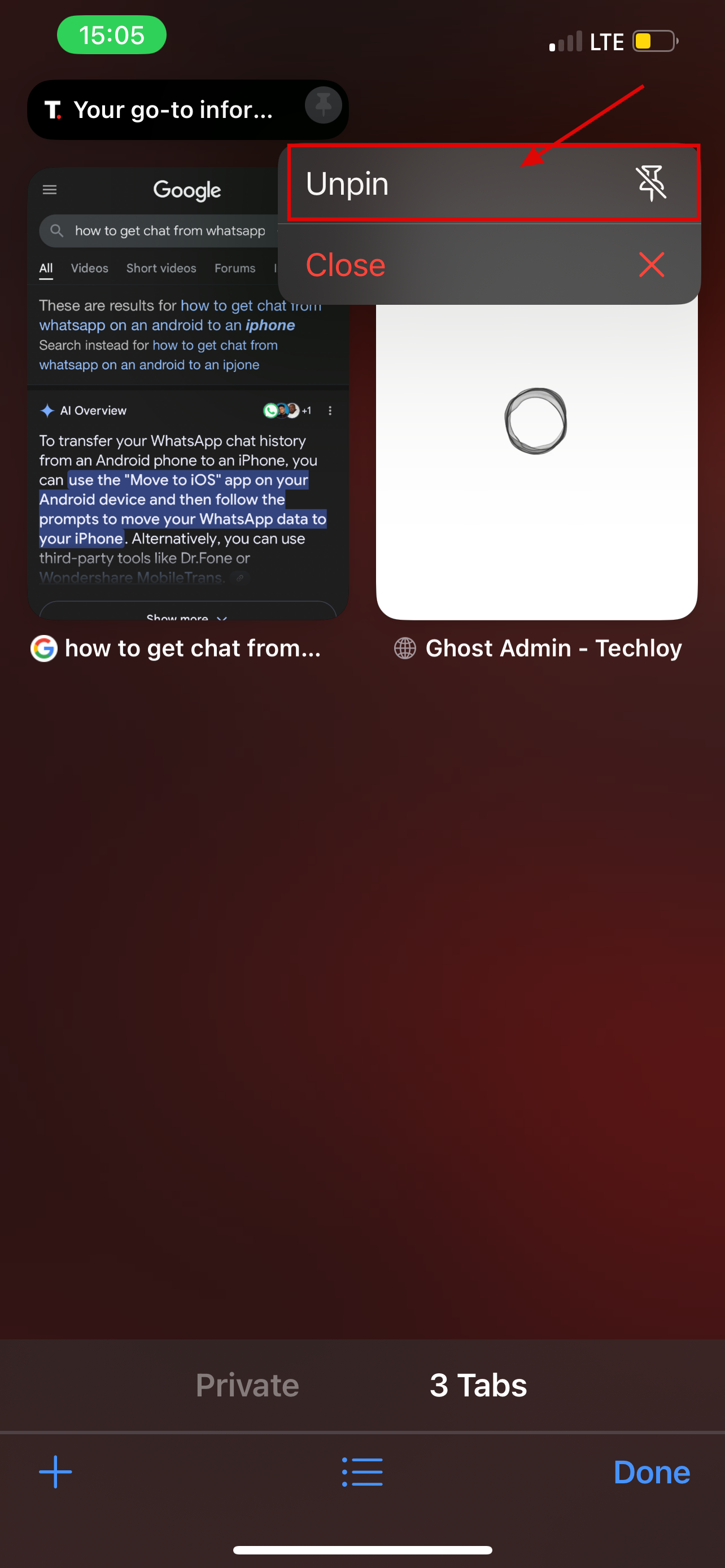 Step 4: To unpin long press the pinned tab