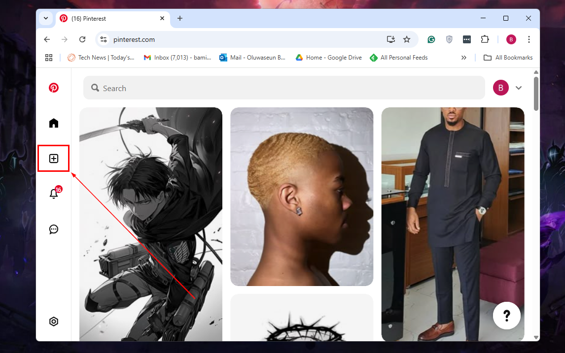 Step 1: Sign into Pinterest and click the "Create" button (plus sign) on the homepage