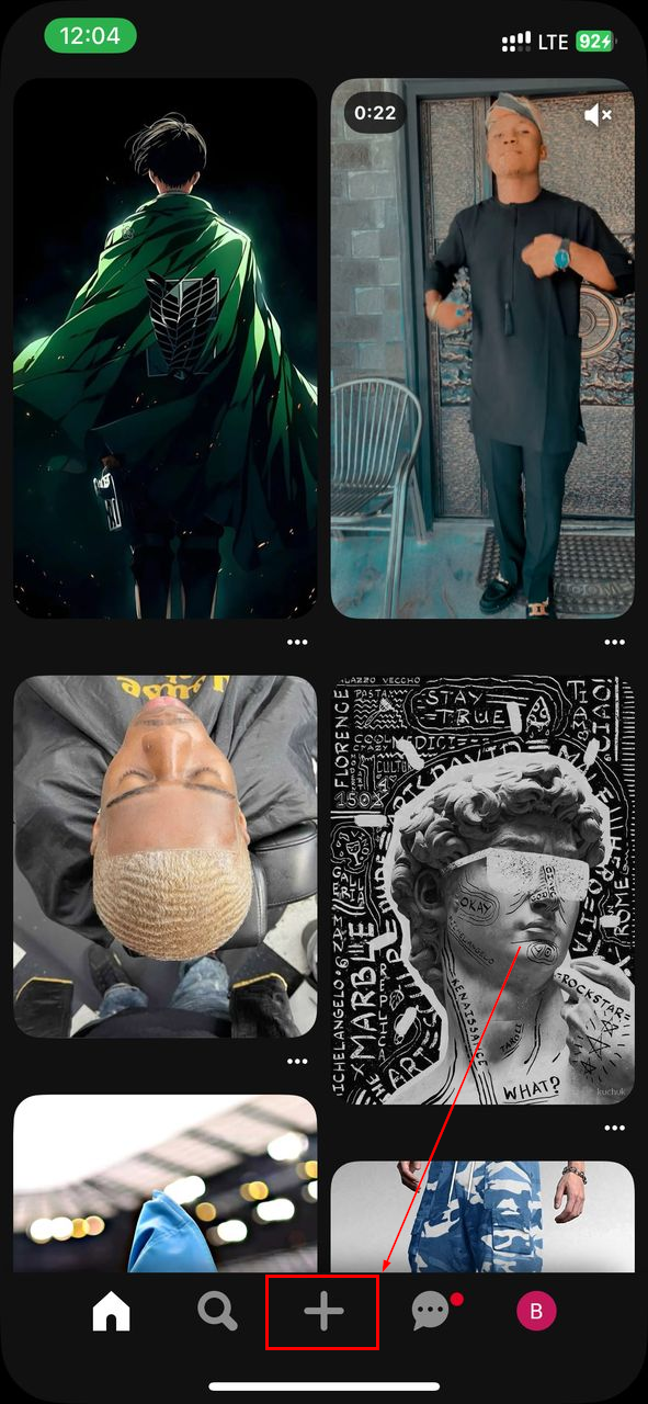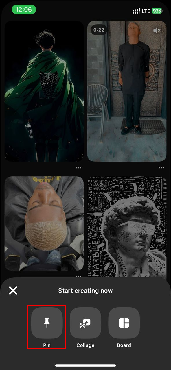 Step 1: Open the Pinterest app and sign in. Then, click the "Create" button (plus sign) on the bottom of the screen