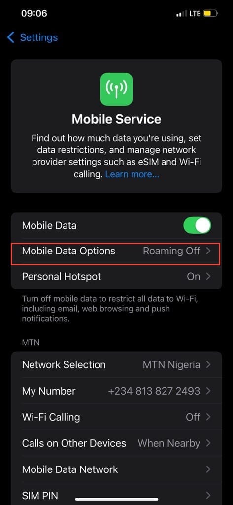 Step 2. Tap "Mobile Data Options."