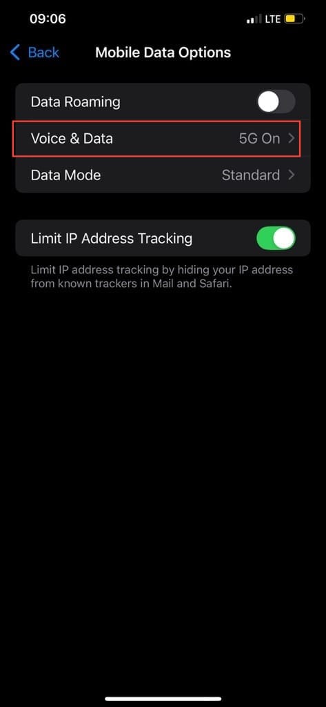 Step 3. Tap "Voice & Data."