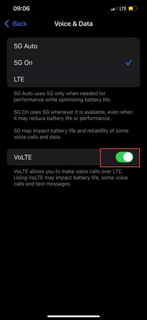 Step 4. Toggle on "VoLTE."