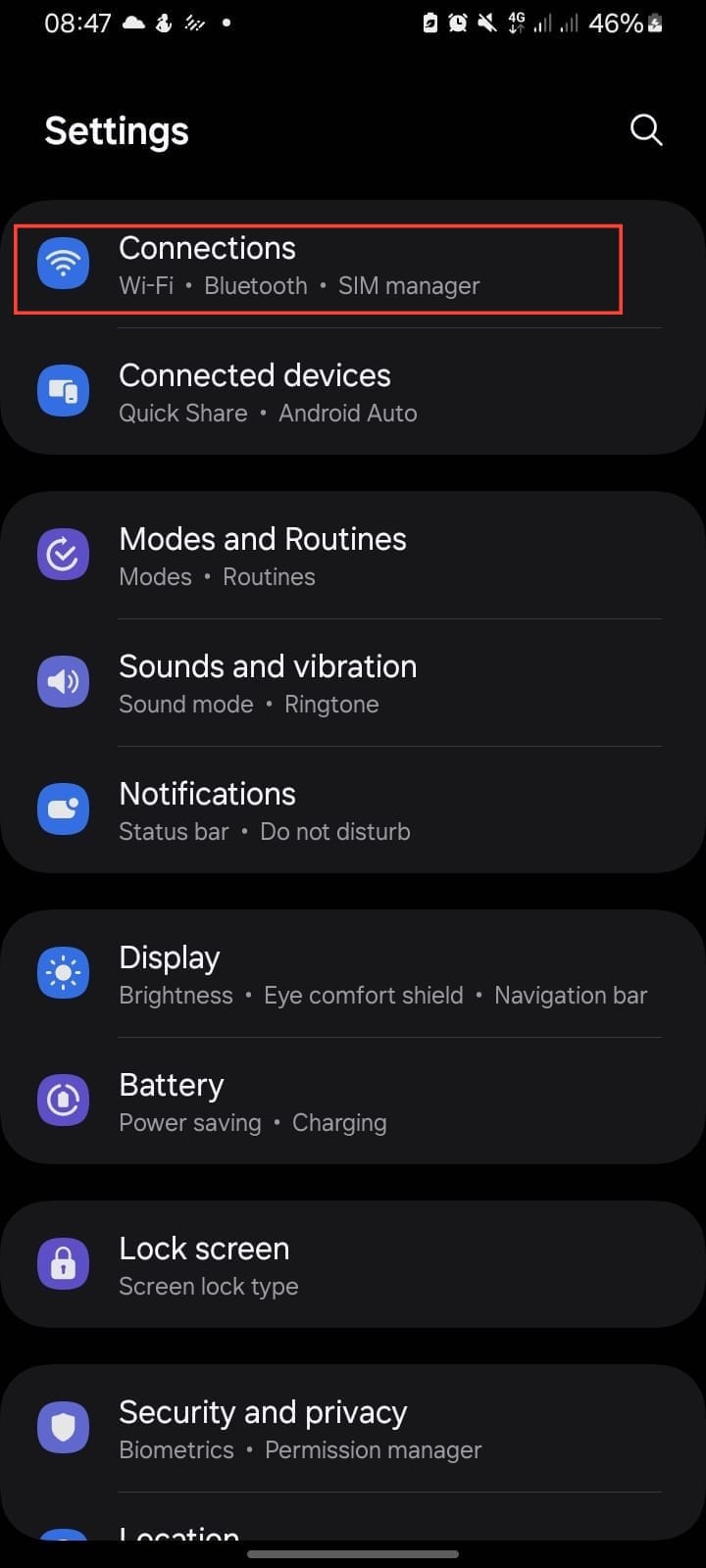 Step 1. Go to "Settings" and tap on "Connections."