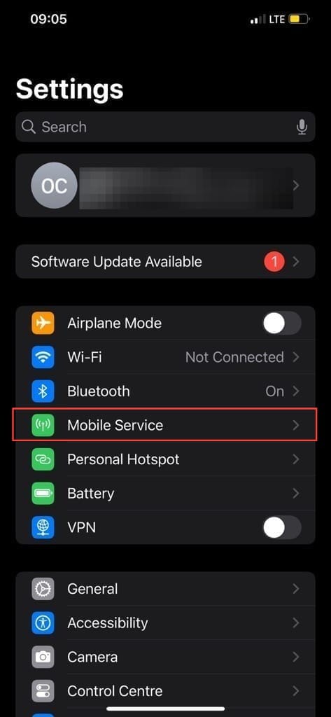 Step 1. Open "Settings" and click "Mobile Service."