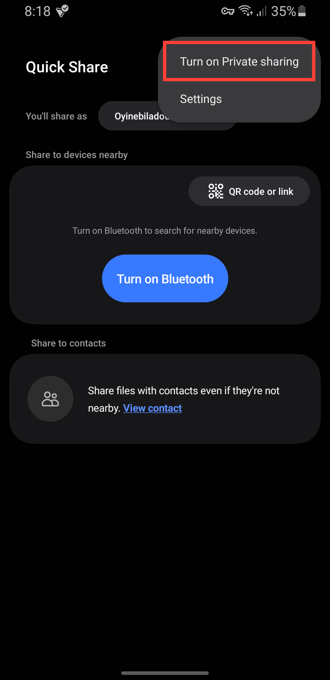 Step 3: Tap the three icon at the top right and select "Turn on private sharing".