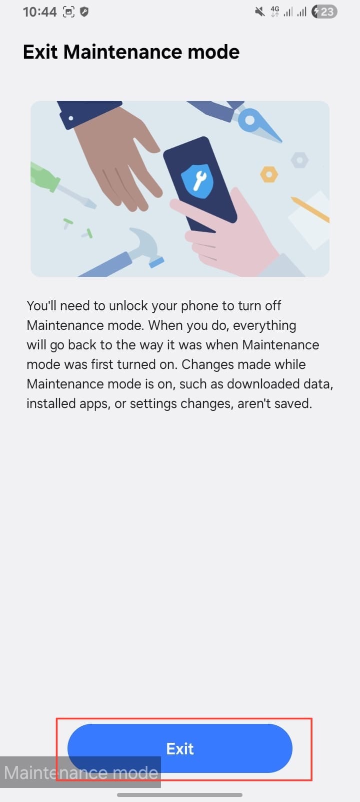 Step 3. Tap "Exit" Maintenance Mode.