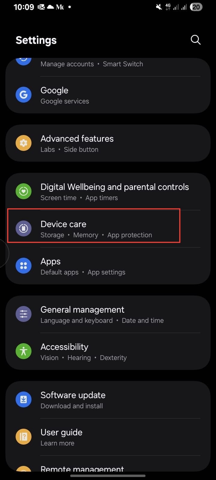 Step 2. Scroll down and tap Device Care.
