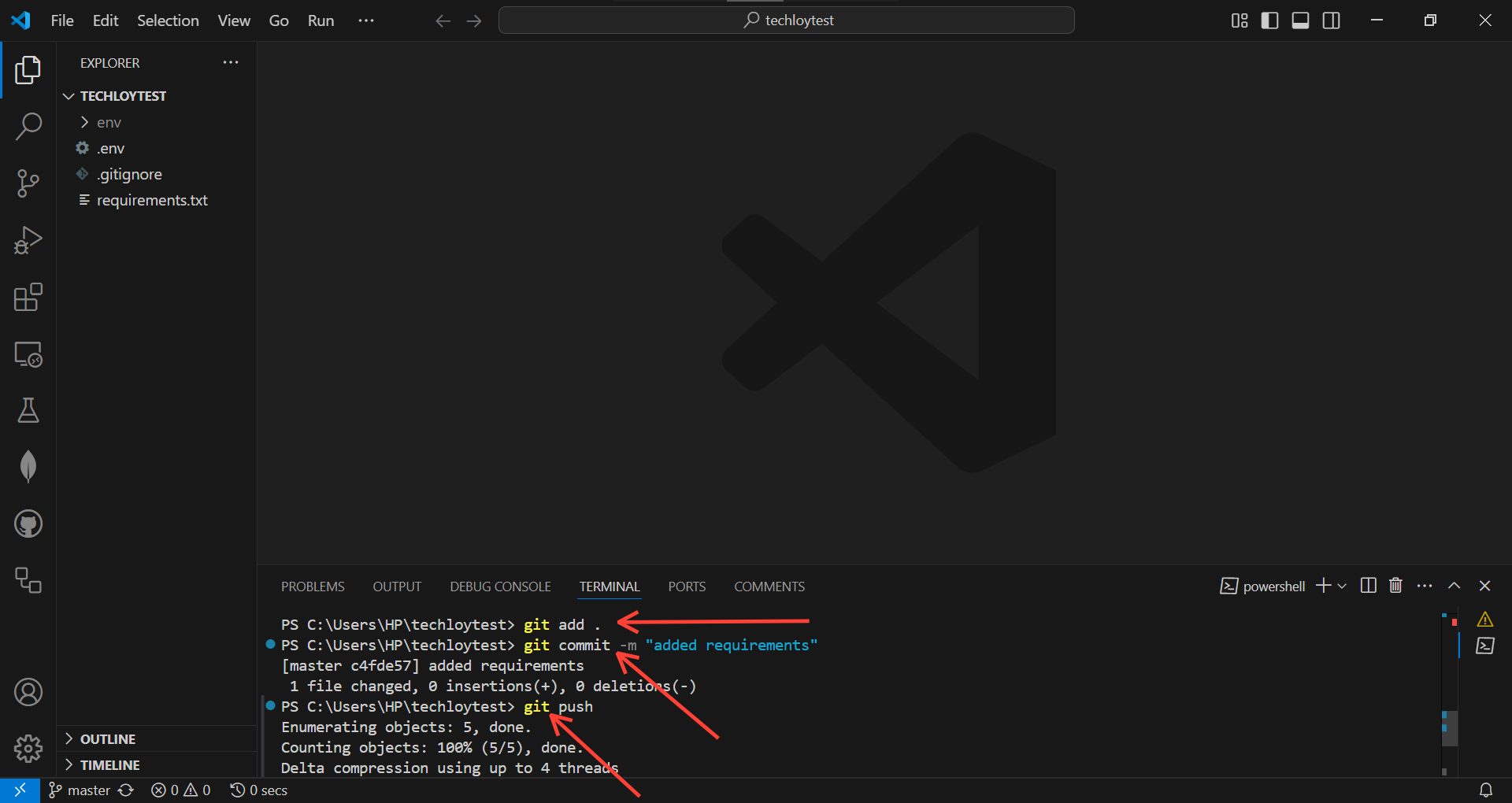 - Then type "git push" to push the changes.