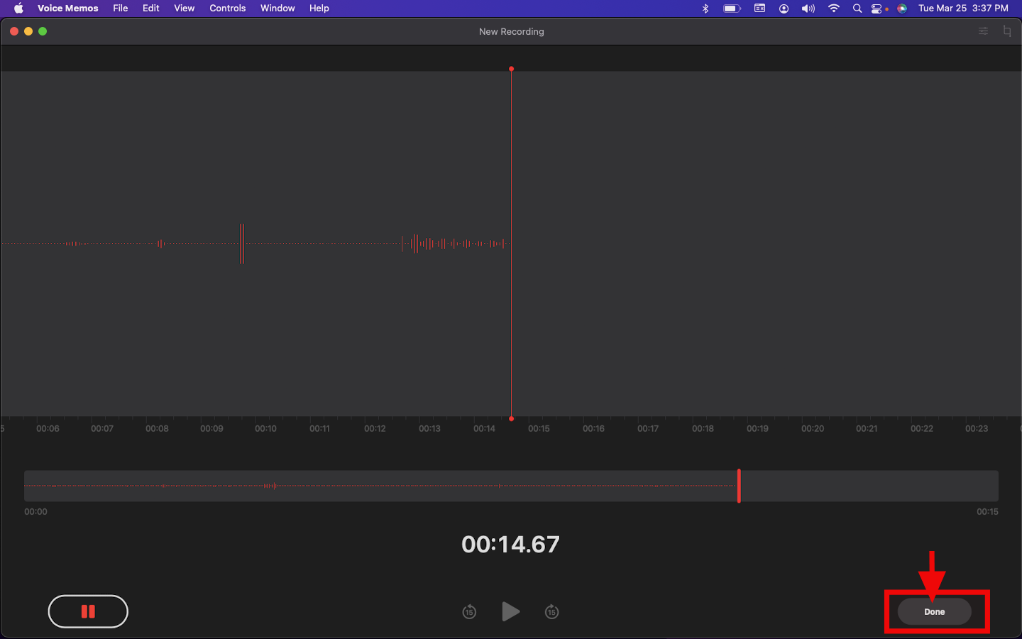 Step 3: Click on the Done button to save audio; your recording will automatically save in the list on the left side of the window