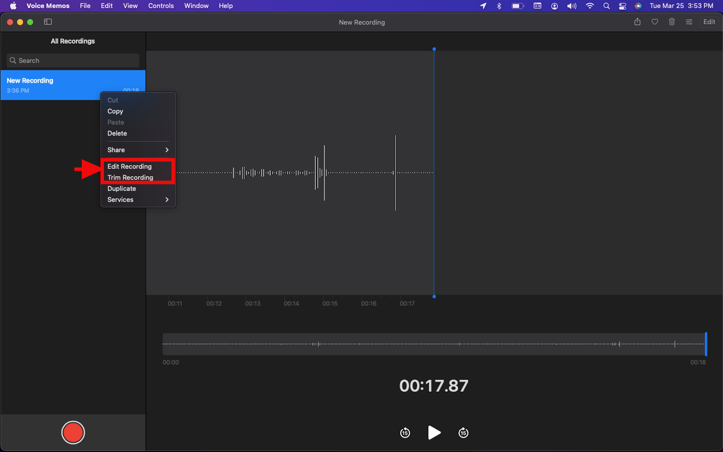 Step 4 (Optional): Right-click the recording and select Edit or Trim to edit or trim the recording