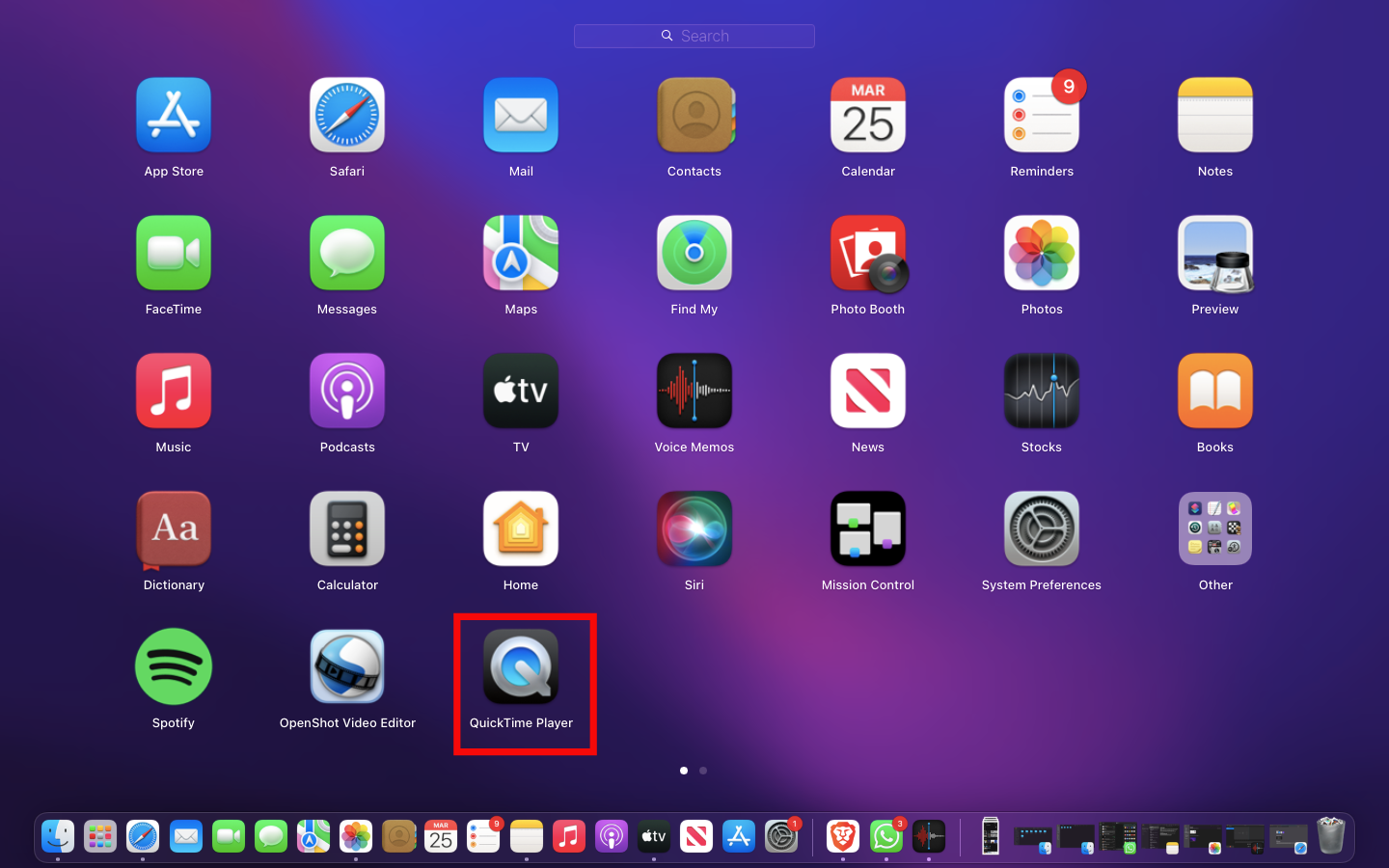 Step 1: Open QuickTime Player from the Launchpad on your docks