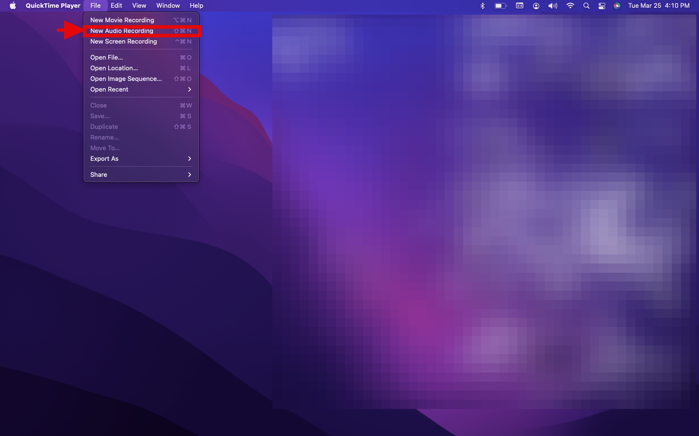 Step 2: From the menu bar, select File → New Audio Recording