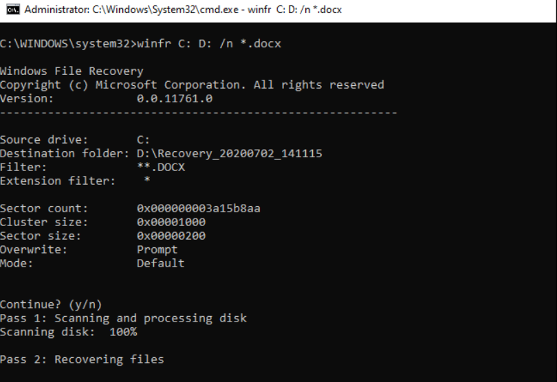 - winfr C: D: /r /n *.docx. (Check link for detailed instructions to recover USB stick for free using Windows File Recovery).