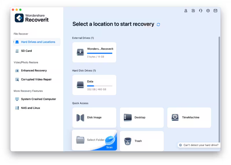 - Recoverit allows you to recover photos from all internal and external hard drives.