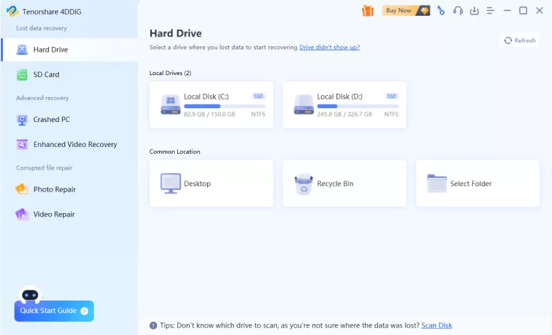 When Command Prompt can’t reclaim your data, it’s best to turn to a specialized data recovery tool like 4DDiG Data Recovery. It can retrieve data from various data loss scenarios, including formatted internal/external storage devices with a high success rate.