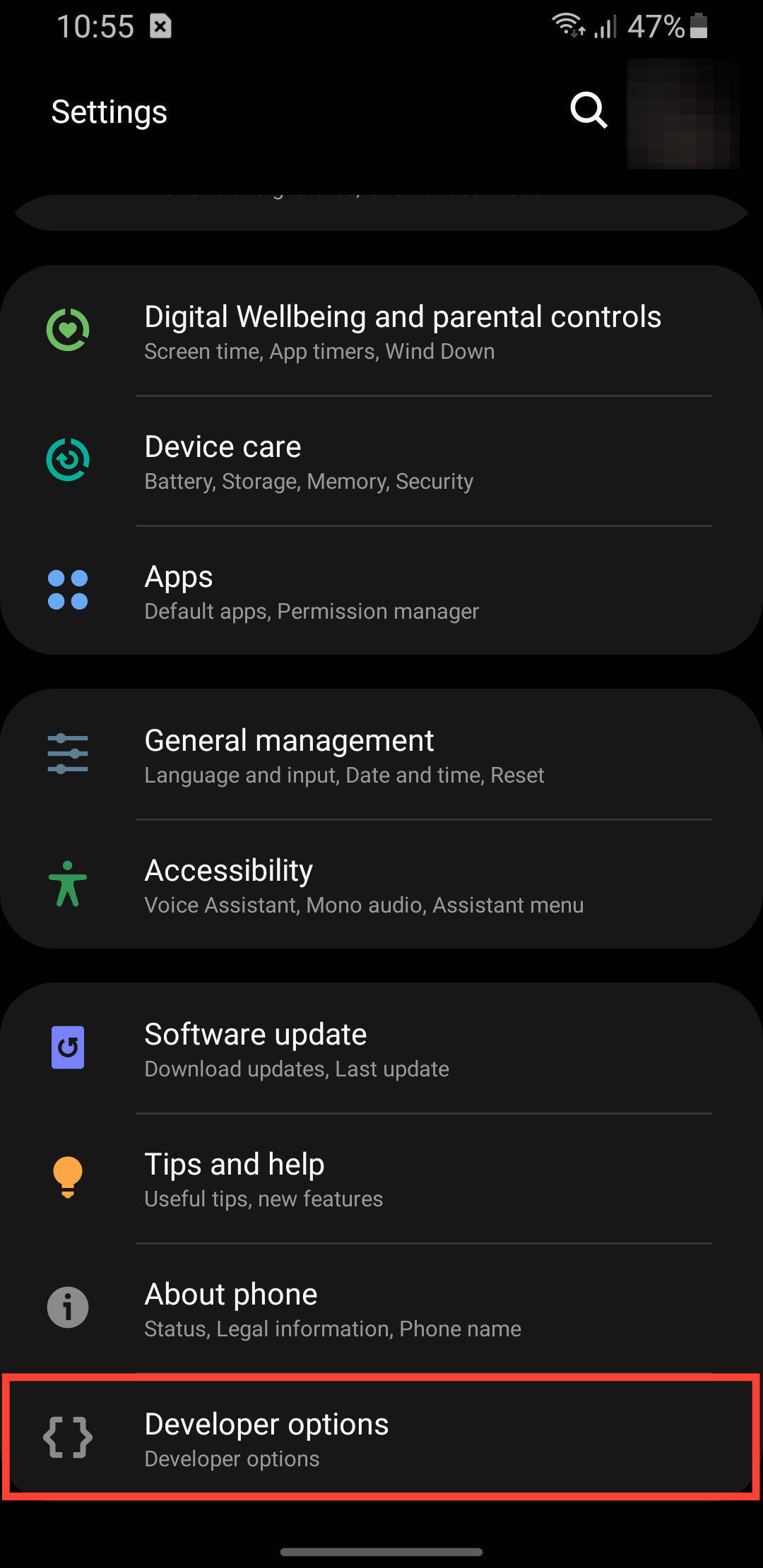 Step 4: Return to Settings and select Developer options at the bottom.