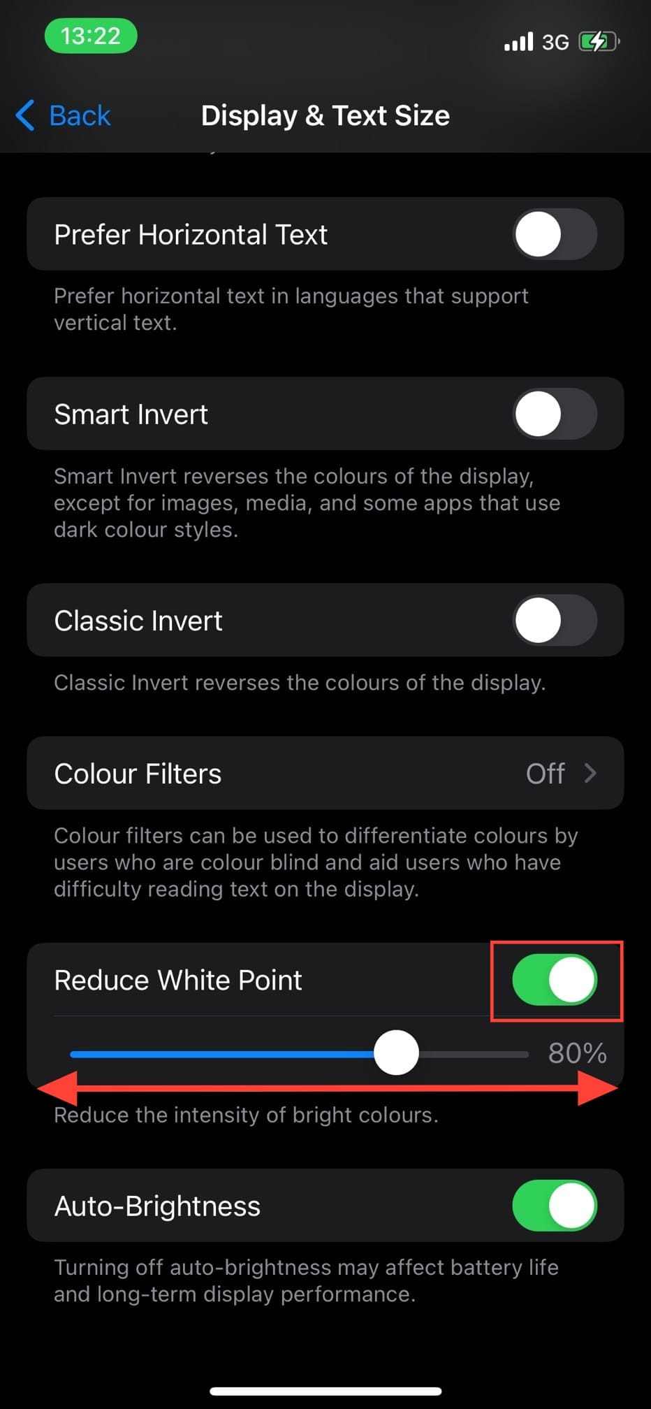 Step 4: Toggle on Reduce White Point. Then use the slider to adjust its intensity.