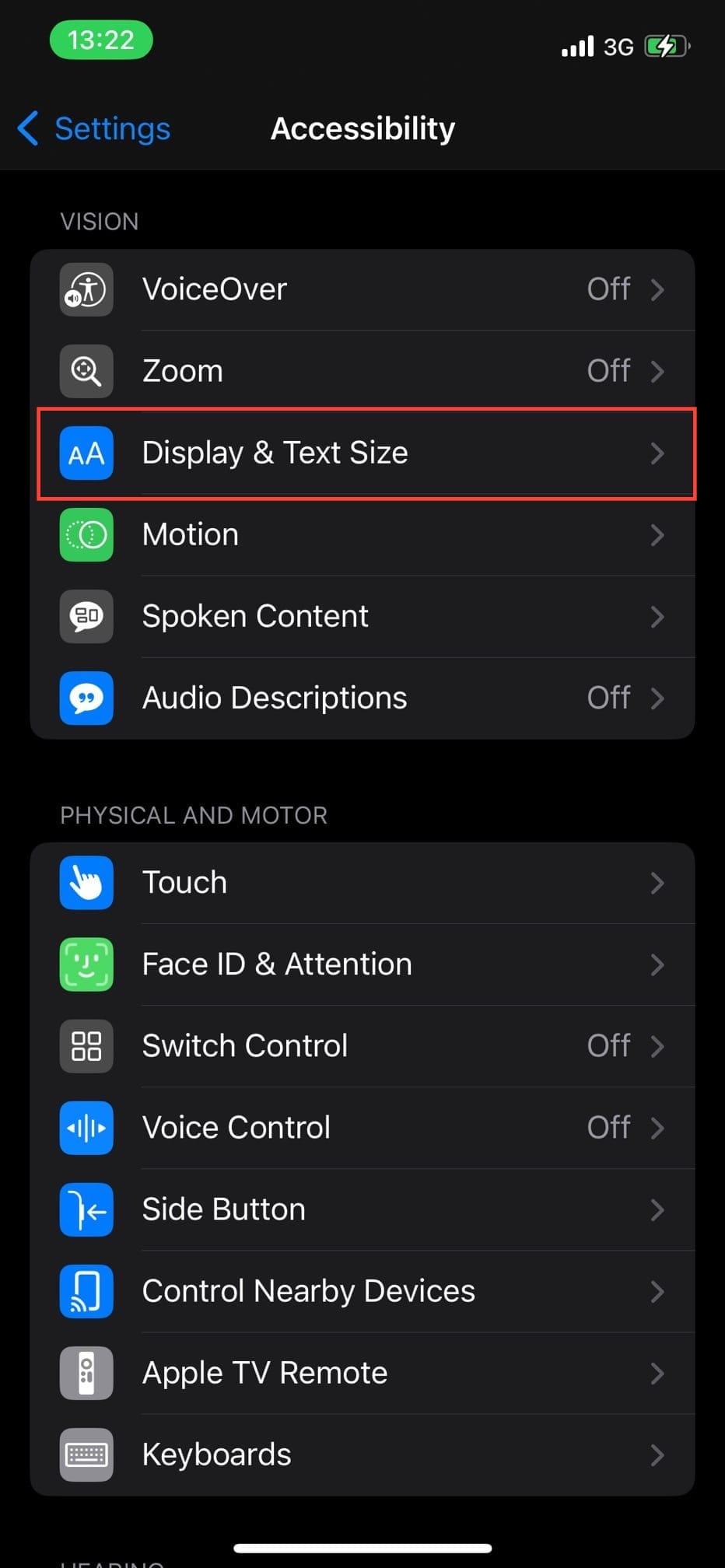 Step 3: Select Display & Text Size.
