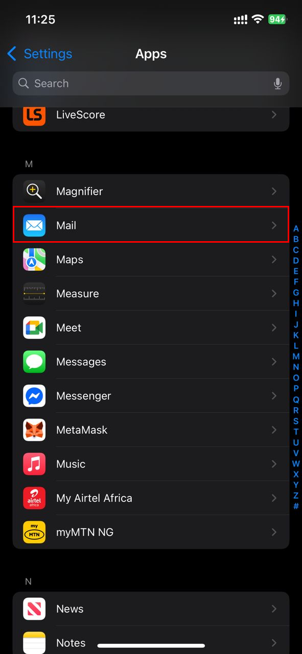 Step 2: Scroll down and tap "Mail"