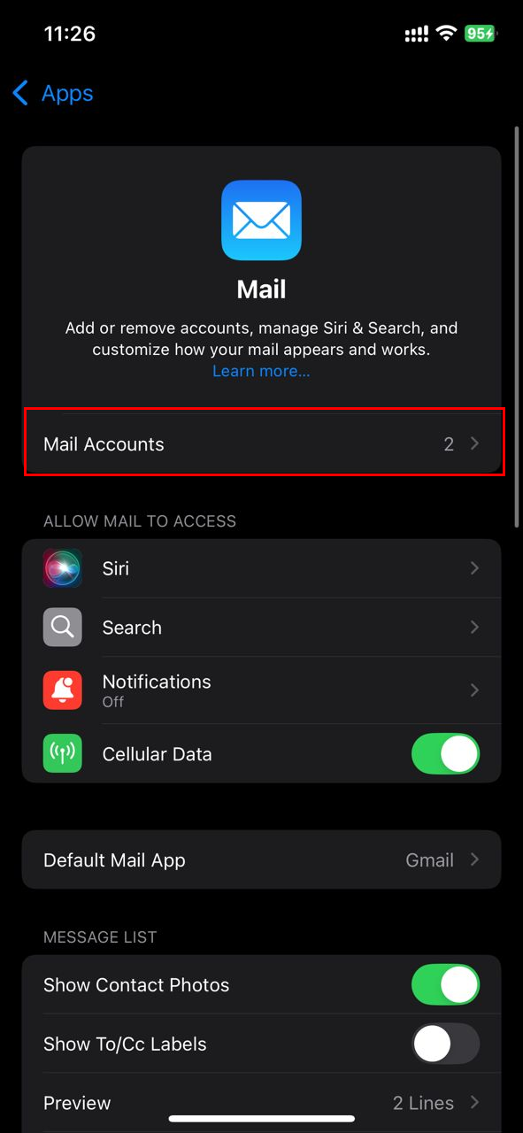 Step 3: Click "Mail Accounts"