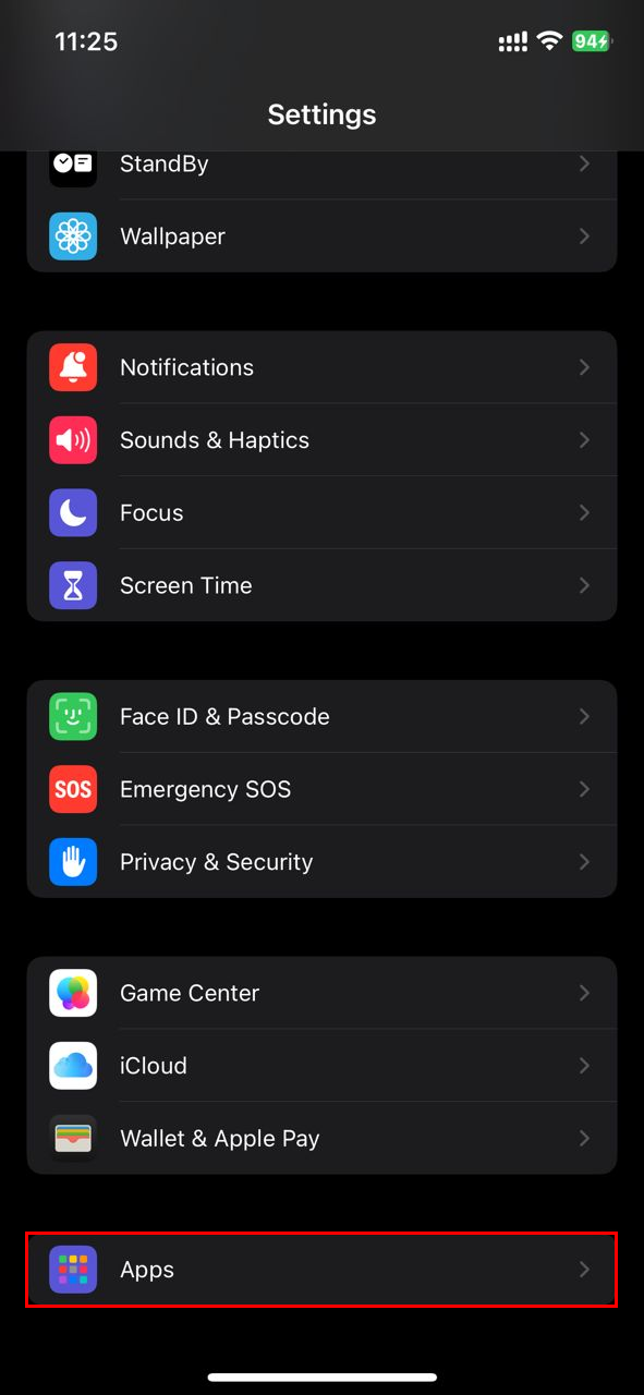 Step 1: Open your iPhone's Settings and select "Apps"