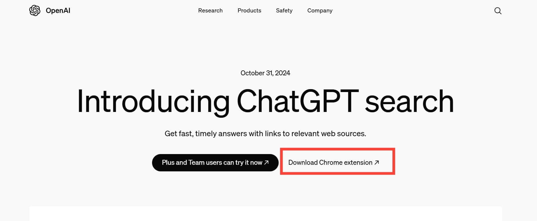 - Open your Chrome browser and visit ChatGPT Search’s announcement page, where you'll see a “Download Chrome Extension” button. Click it to go directly to the Chrome Web Store page.