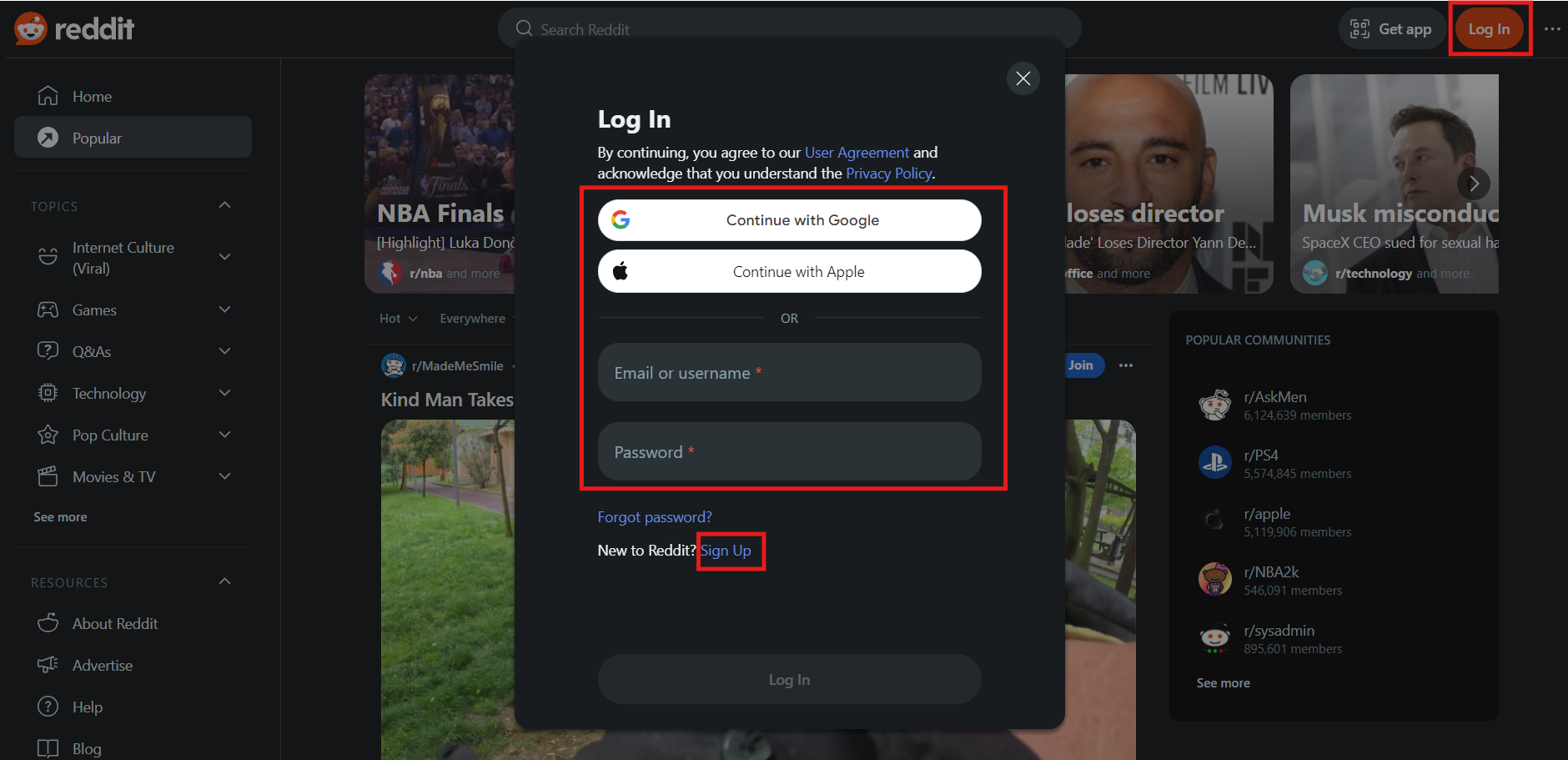 Step 1: Go to the Reddit website and log in with your details by clicking on the login button at the top right corner of your screen. You can also sign up for a new account if you do not have one.