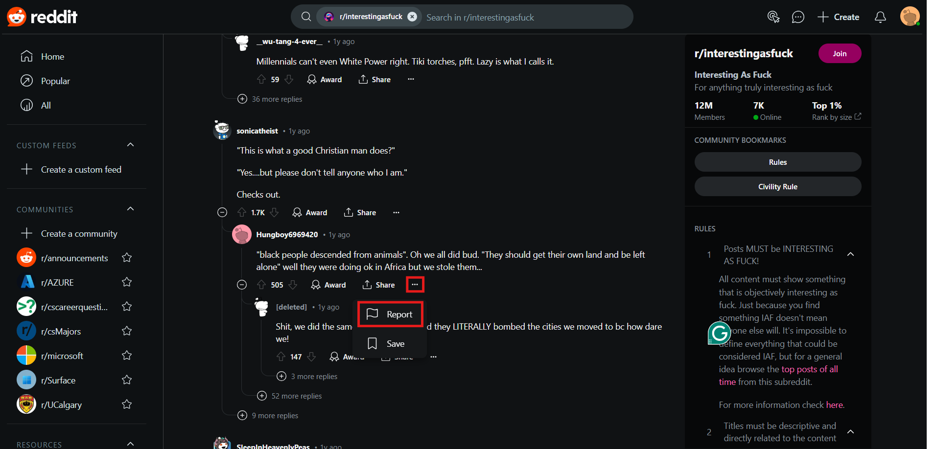 In such situations, reporting these inappropriate posts or comments on Reddit is an important way to ensure the platform remains a safe and welcoming space for all users. Whether it's spam, harassment, or any other violation of Reddit's rules, reporting such content allows moderators and administrators to take appropriate action.