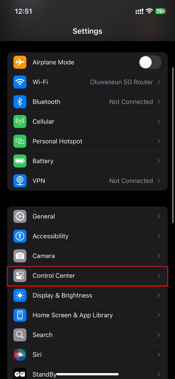 Step 1: Open the Settings app on your iPhone and select "Control Center"