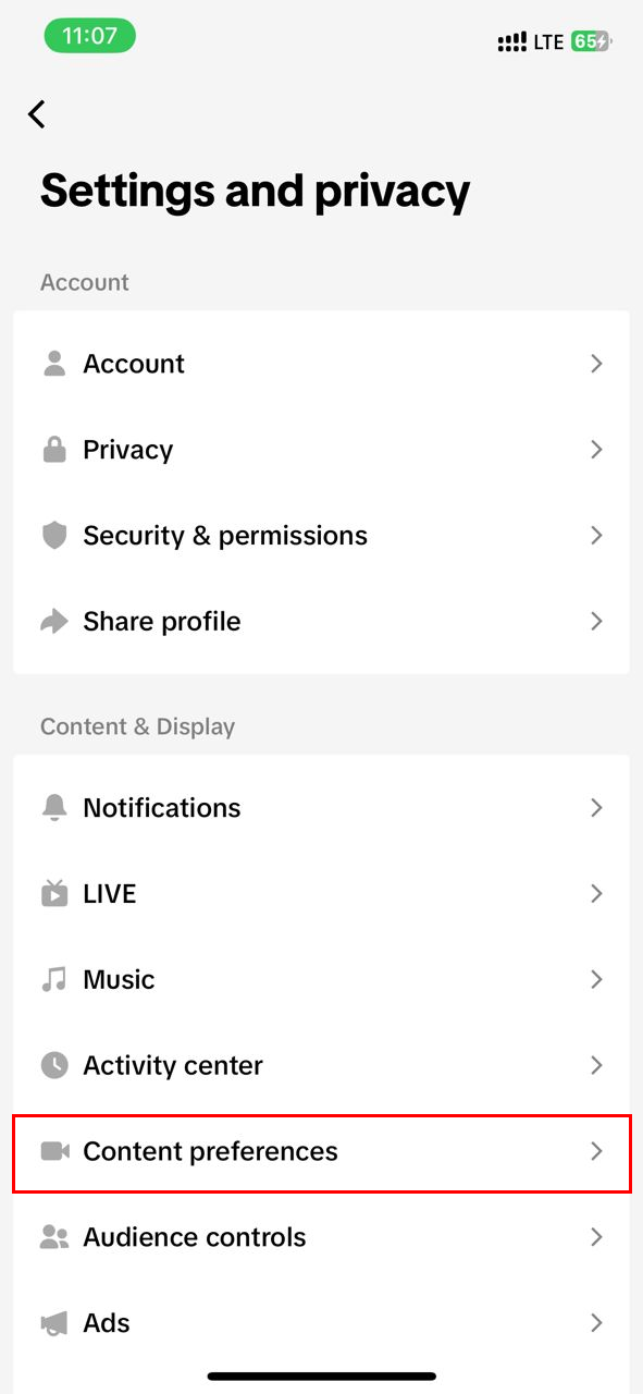 Step 4: Now, choose "Content preferences" under the Content & Display section
