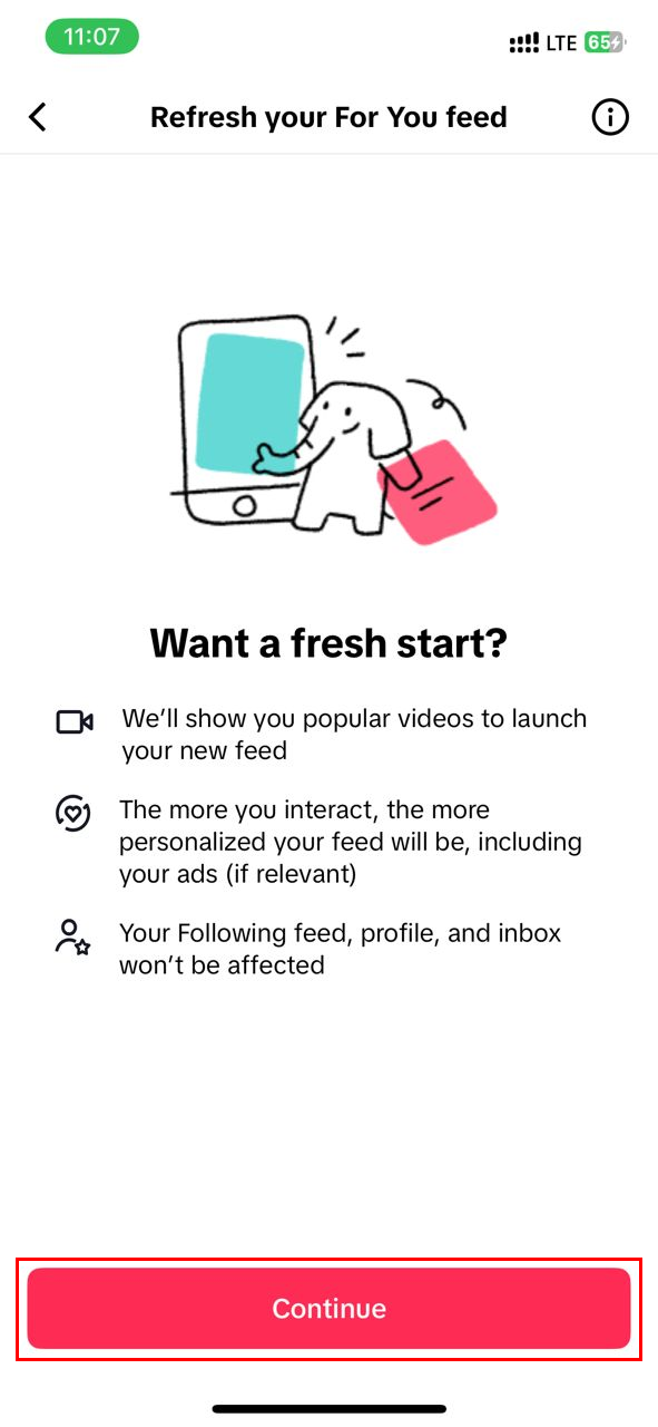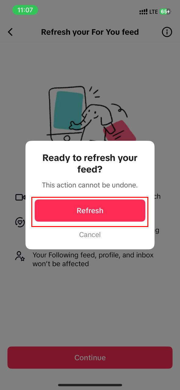 Step 7: Finally, you’ll see TikTok warn you that it can’t be undone. Click "Refresh"