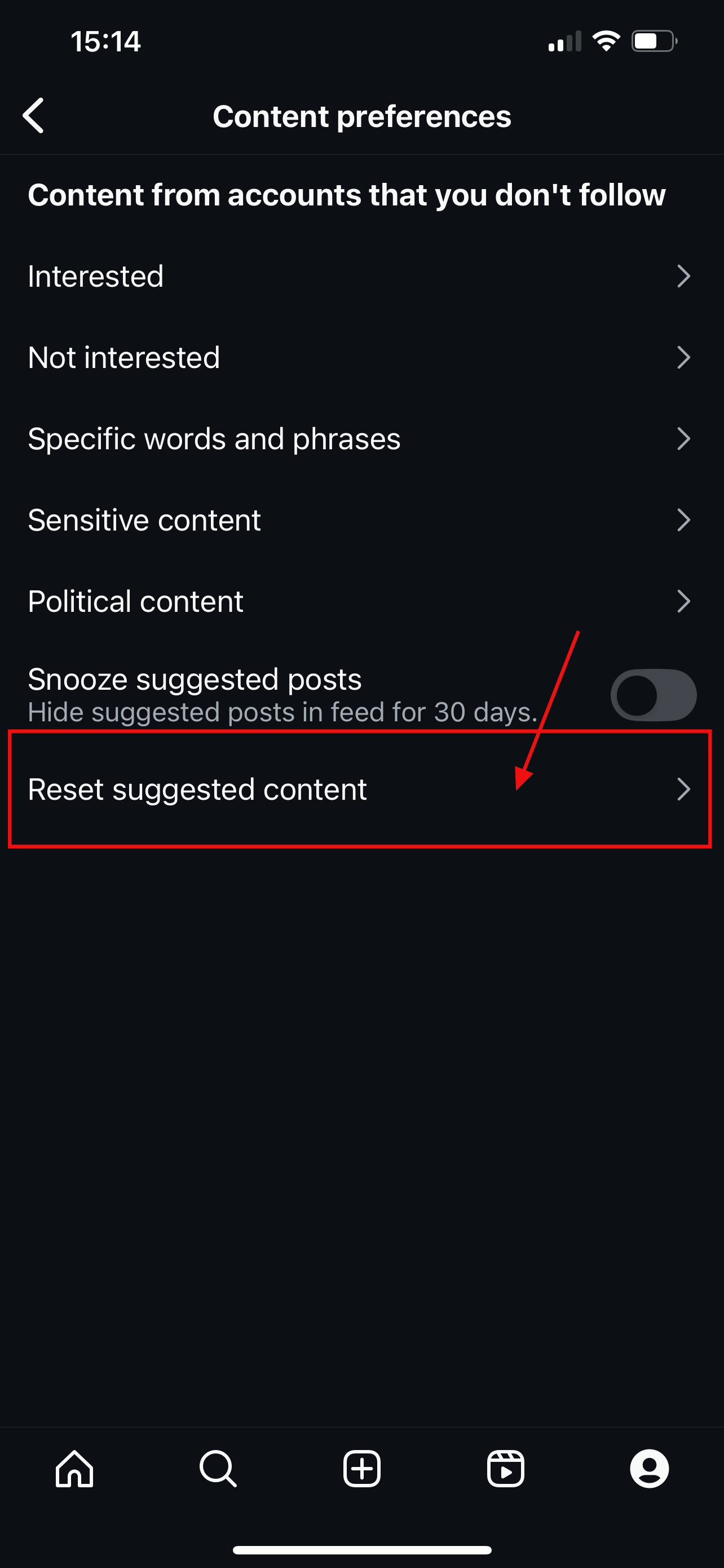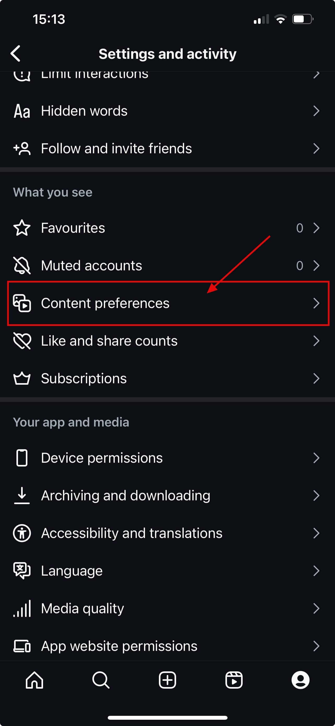 Step 4: Scroll down to the What you see section and click on Content preferences