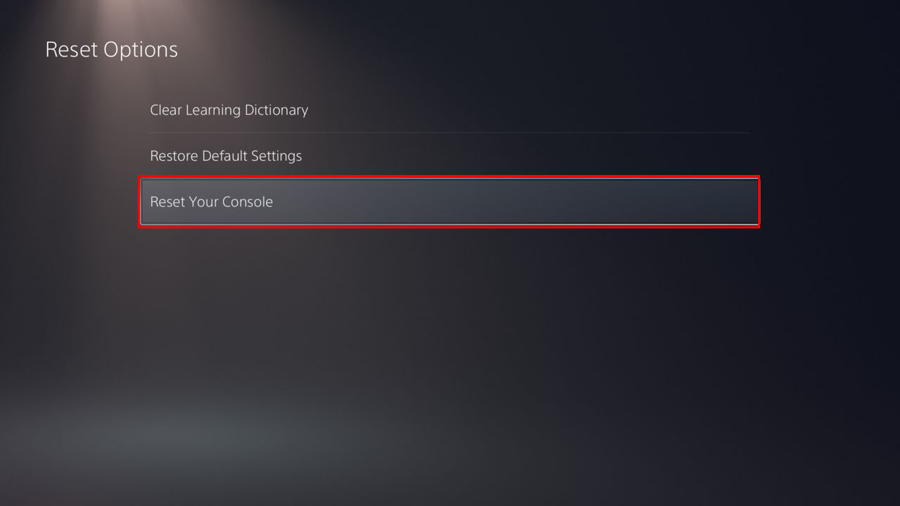 Step 4: Tap "Reset Your Console" and follow the prompts to begin the reset. This will wipe all user data and settings, returning the PS5 to its factory state