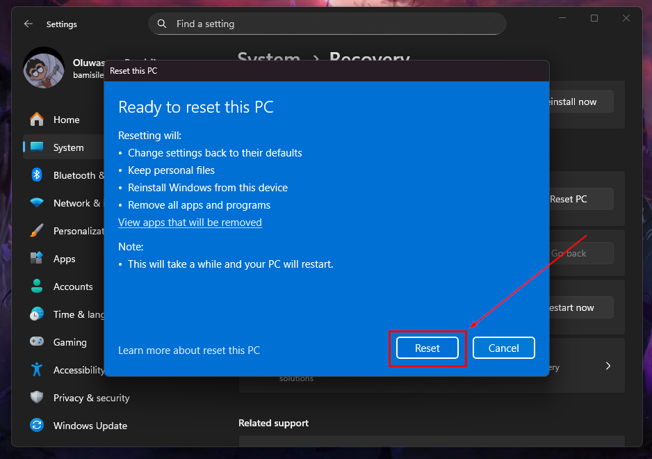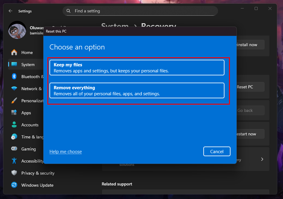 Deep down, I knew it was time for the nuclear option, which is a reset. And with just a few clicks, Windows 11 lets you choose between preserving your personal files or wiping everything for a clean start.