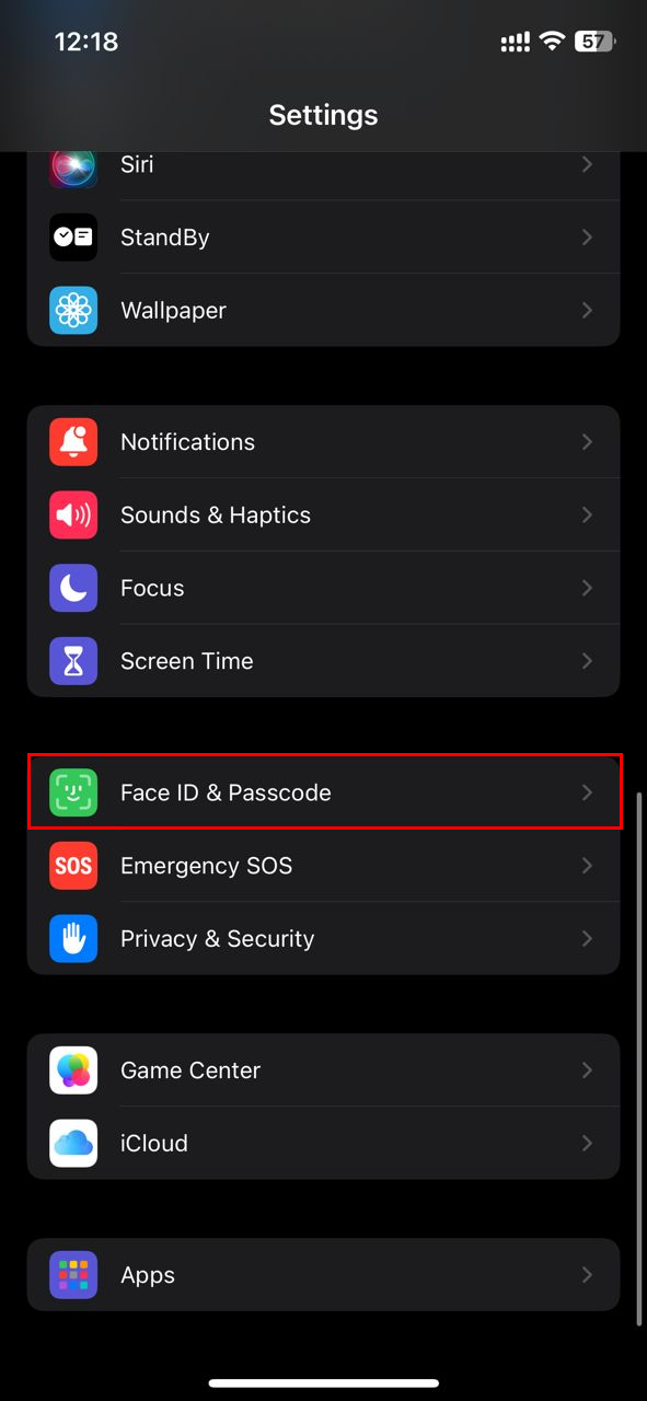 Step 1: Open the Settings app and select "Face ID & Passcode"