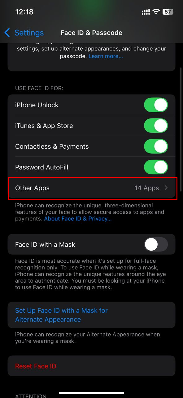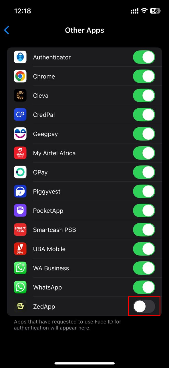 Step 4: Here, you will see a list of apps that have requested access to Face ID. Now, toggle off the switch beside an app you wish to revoke its Face ID access