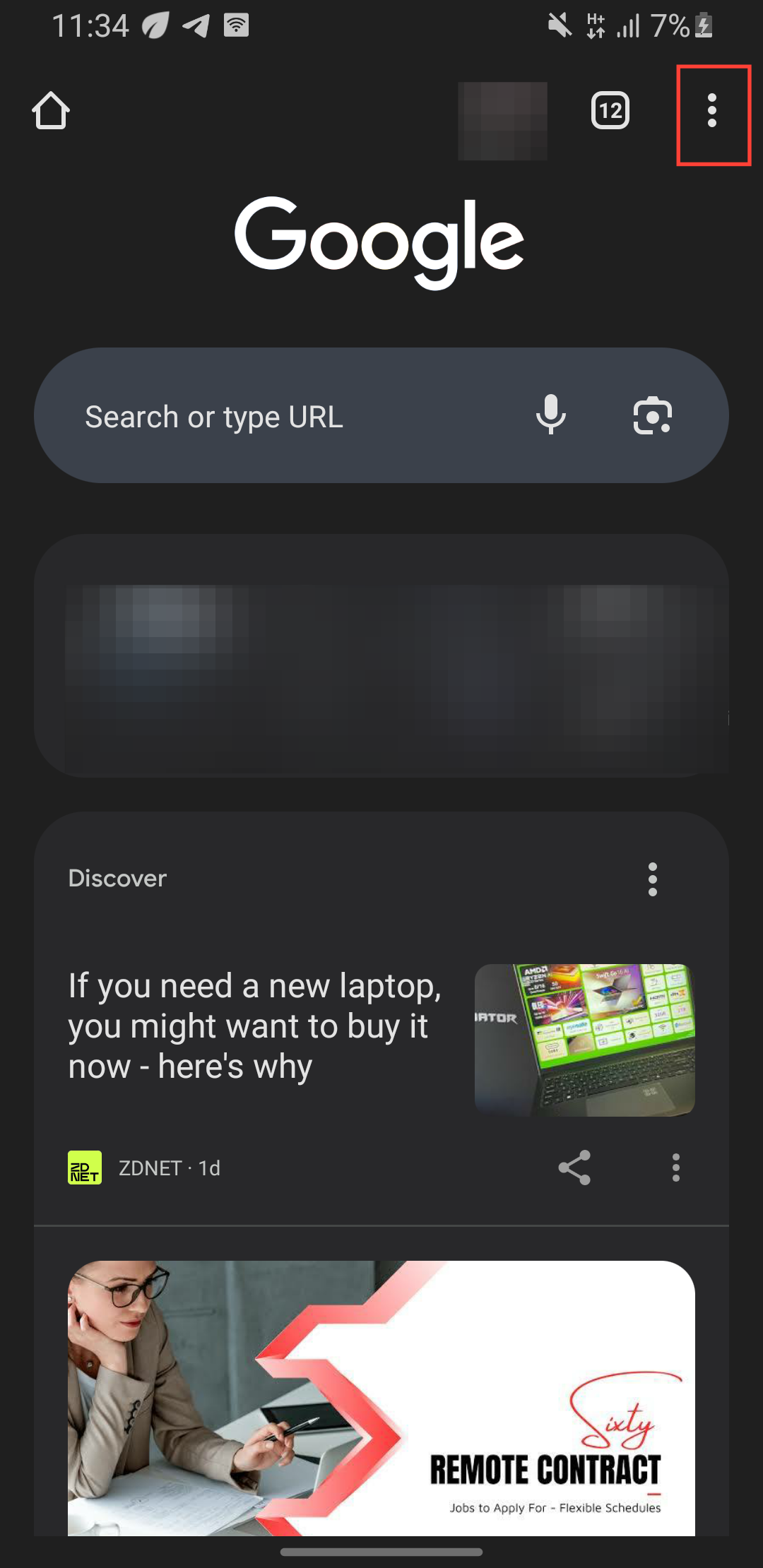 Step 1: On your Android device, open Chrome then tap the three dots on the top right.